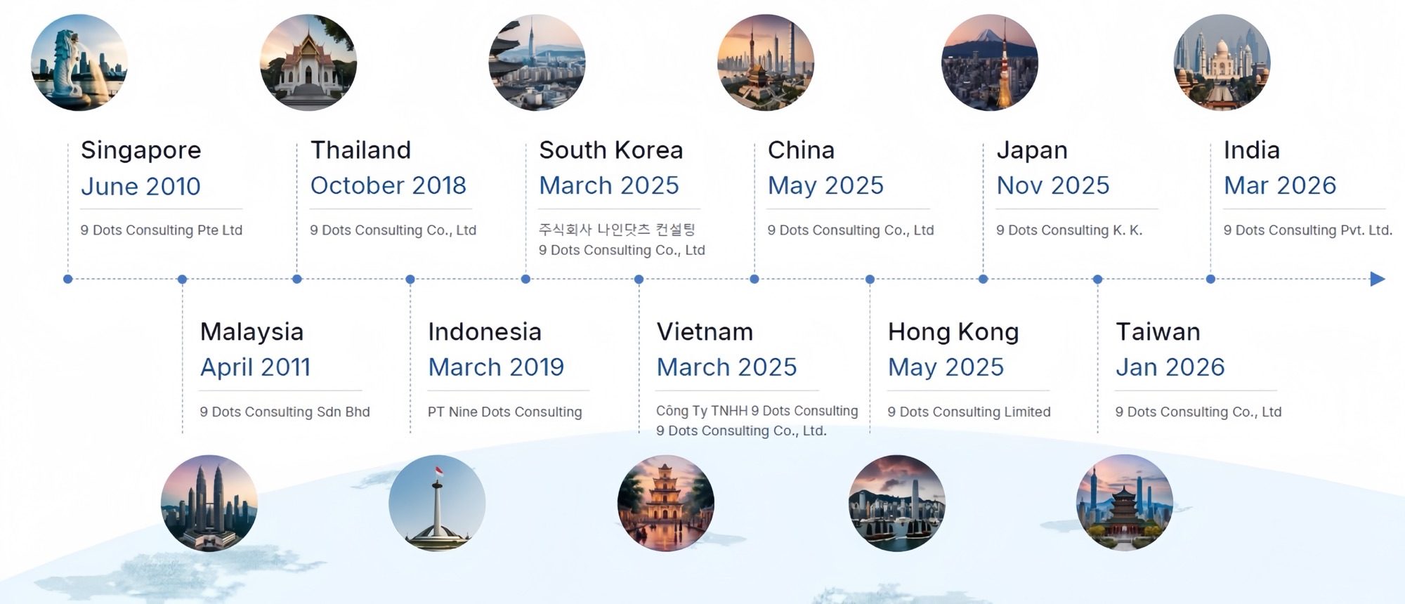 Founded in 2010, 9 Dots Consulting Group has grown into a trusted system integrator in the Asia Pacific region. With established offices in Singapore, Malaysia, Thailand, Indonesia, South Korea, Vietnam, Hong Kong, China, Japan, Taiwan, and India, we specialize in delivering innovative, AI-driven enterprise solutions that drive real business transformation.